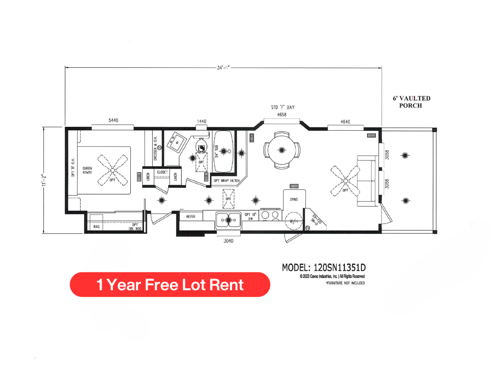 Rental price includes water, septic, garbage collection and the use of park amenities.